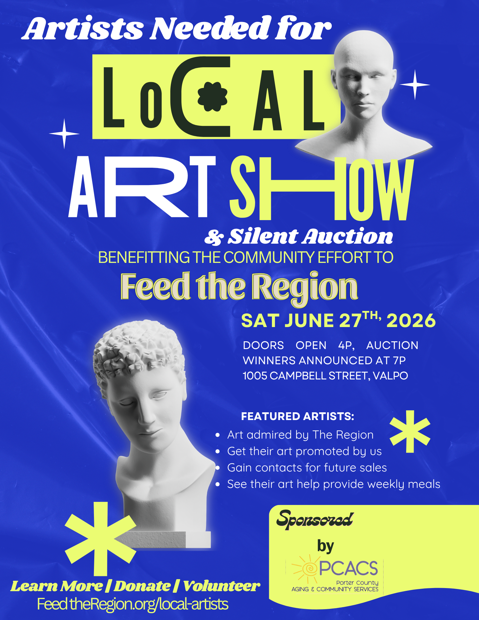 Whether you’re a professional artist or creating in your spare time, we’d love to feature your work in our Local Artist Art Show & Silent Auction that benefits Feed the Region.